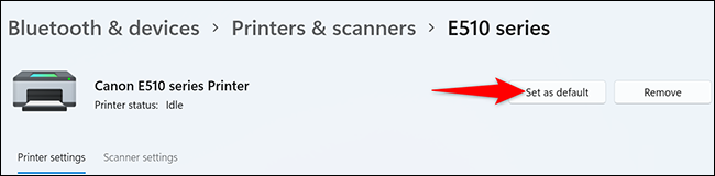 与 Windows 10 一样,在 Windows 11 上,使用“设置”应用程序将打印机设为默认值。