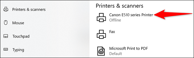 在同一页面上的“打印机和扫描仪”部分中,单击要设为默认值的打印机。
