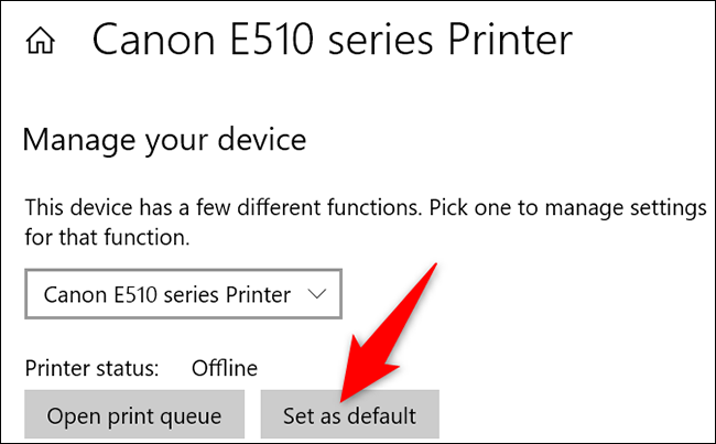 您的打印机页面将打开。在这里,单击“设为默认值”按钮。