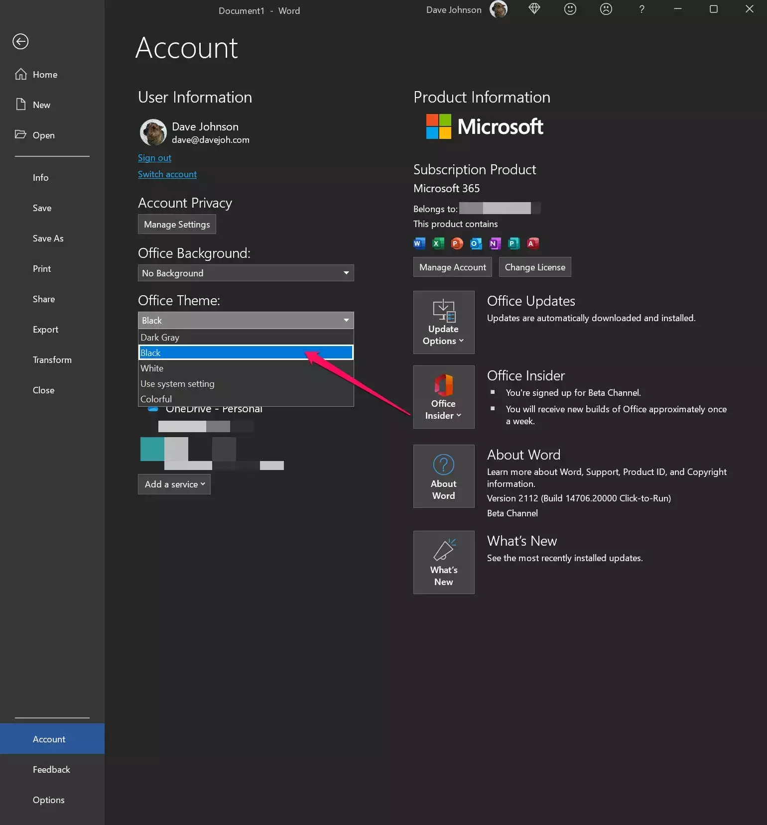 如果您更喜欢更准确的白色文档,并希望确保即使在黑暗模式下 Word 也始终以这种方式启动,请执行以下操作: