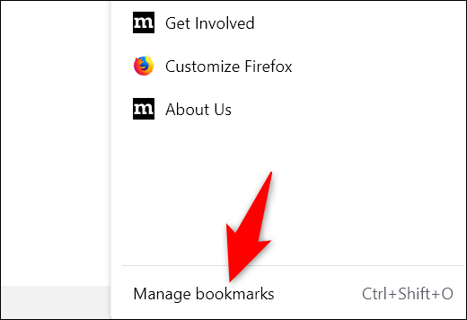 在“书签”菜单的底部,单击“管理书签”。