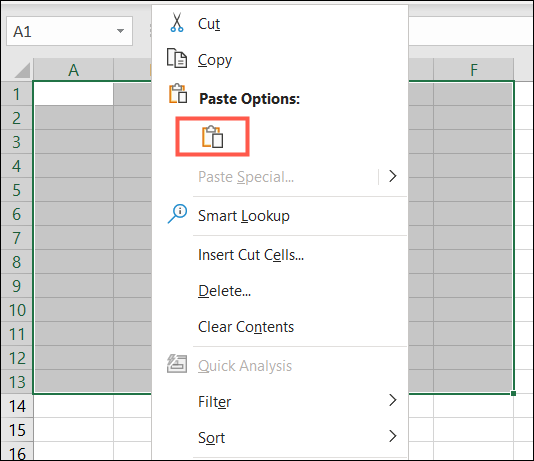 转到新工作表或书籍中要粘贴刚刚剪切的单元格的单元格。右键单击并选择“粘贴”或转到“主页”选项卡并单击功能区剪贴板部分中的“粘贴”。