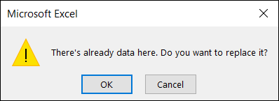 当您移动一个单元格或单元格区域并且它与已经包含数据的单元格重叠时,您将收到一条警报消息。