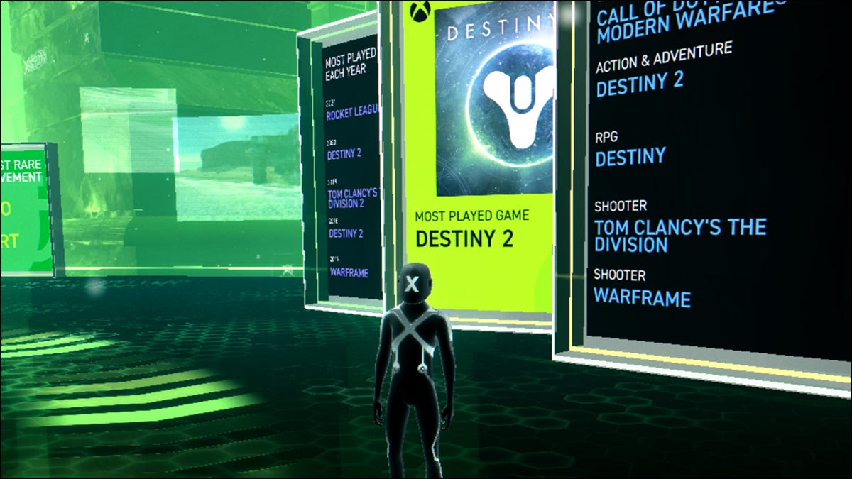 探索虚拟博物馆是一件很酷的事情,这里的事情变得整洁是体验的个人部分。您可以回顾一下您多年来的 Xbox 统计数据。您可以查看您在Xbox 主机上先玩过哪些游戏、您玩过的游戏总数等。例如,我在 Xbox 游戏机上玩了 302 场游戏,我玩《命运 2》的次数比任何其他游戏都要多。