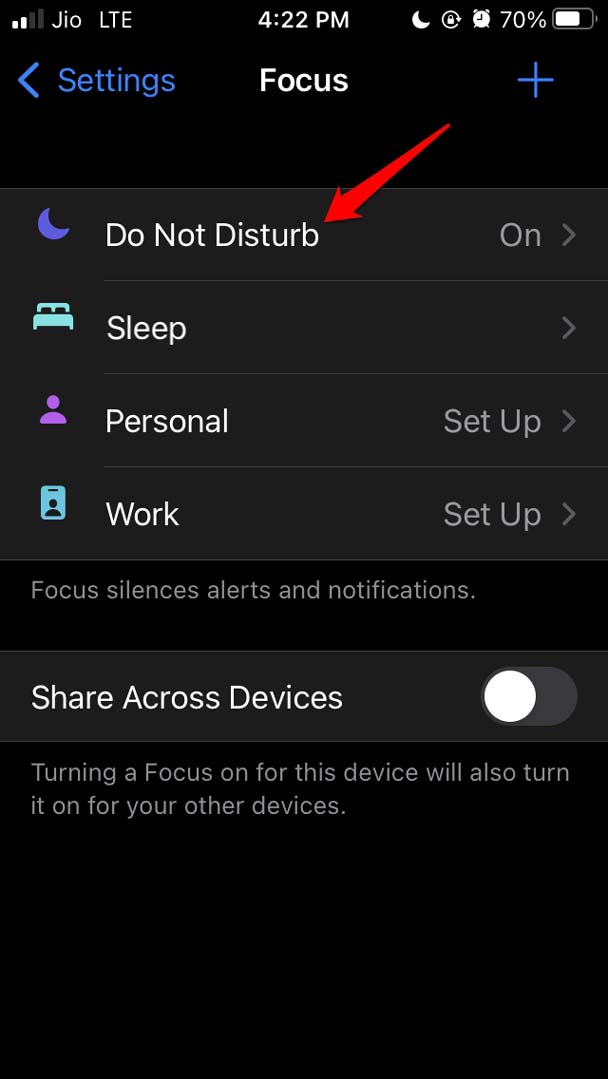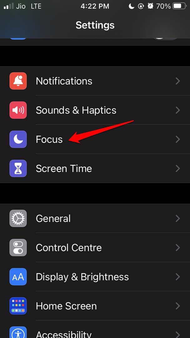 现在,您不希望在 iPhone 上收到任何通知,并不意味着您想错过 Mac 上的其他通知。因此,为避免混淆,您可以禁用 iPhone 上的焦点共享功能。