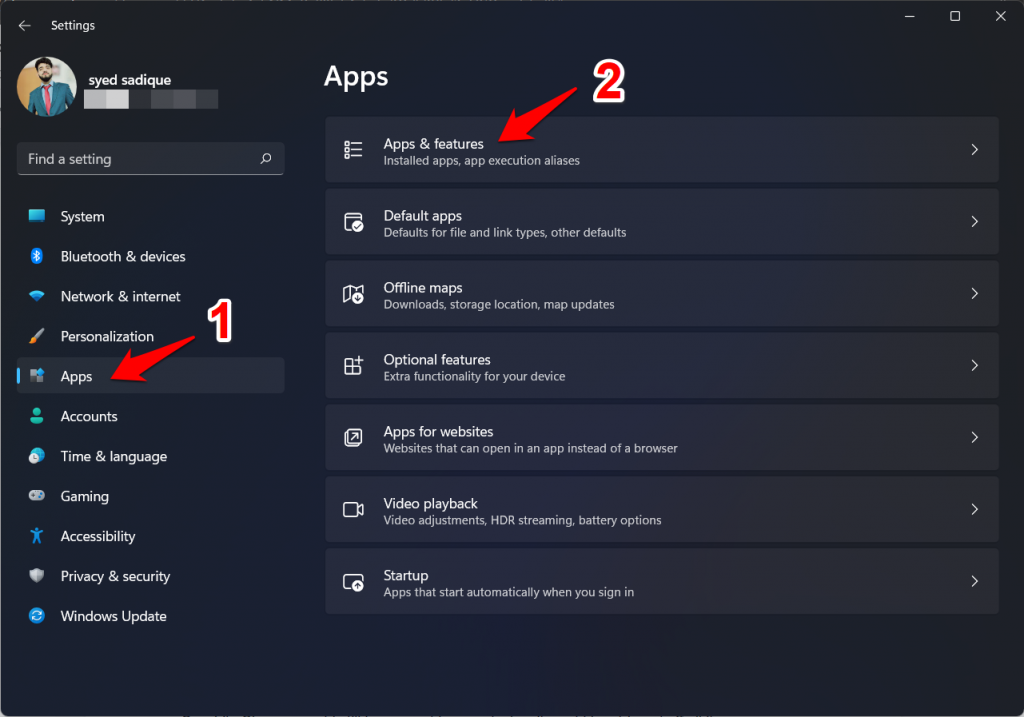 - 从左侧栏中选择应用程序,然后转到应用程序和功能。