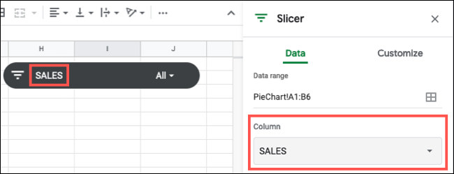 然后,在显示的侧栏中选择要过滤的列。如果您没有看到侧边栏,请双击切片器将其打开。