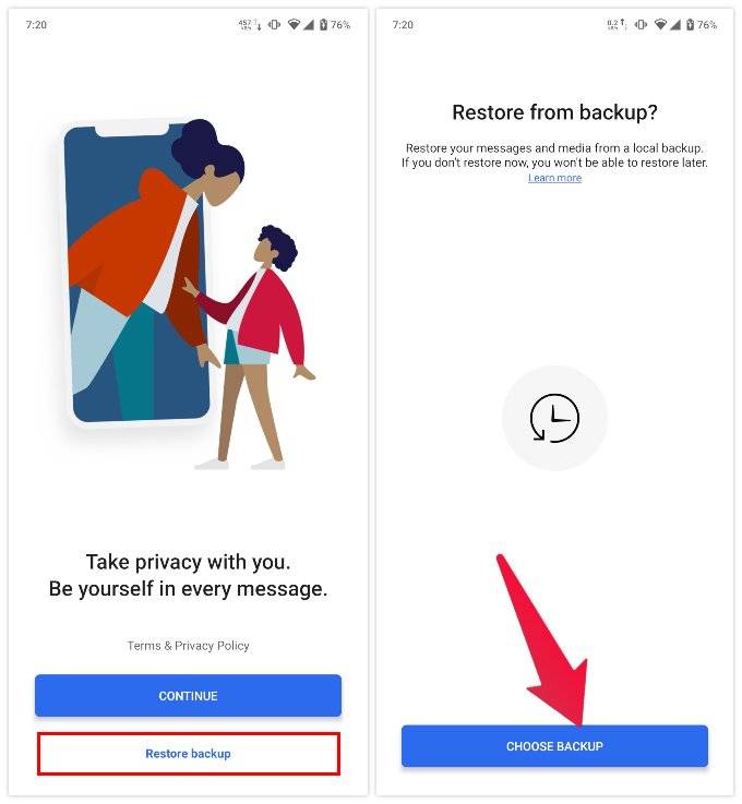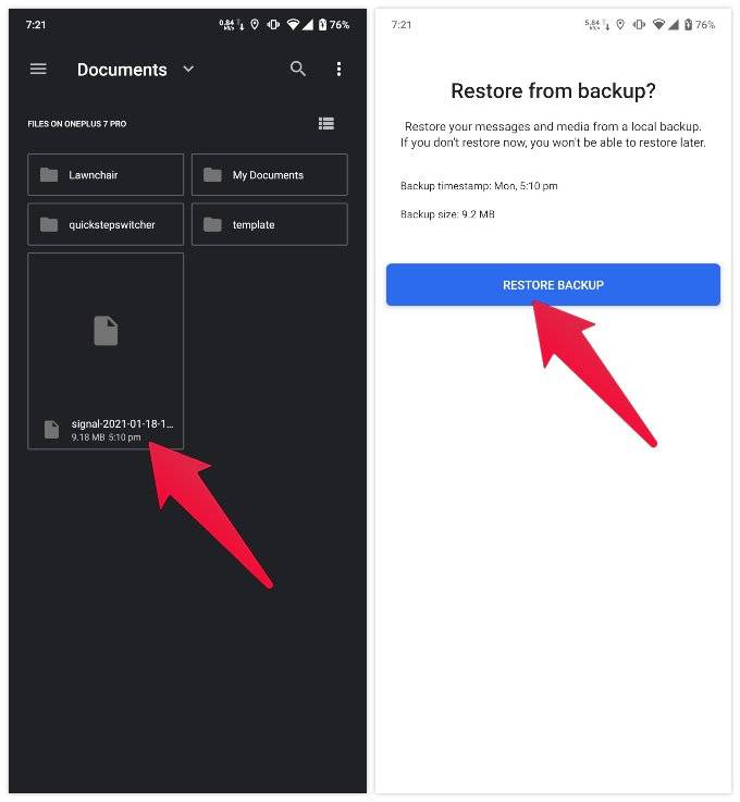 使用您的电话号码完成设置Signal帐户后,所有聊天记录都已经在那里等待着您。这是您在手机上还原信号备份以获取所有备份消息的方式。