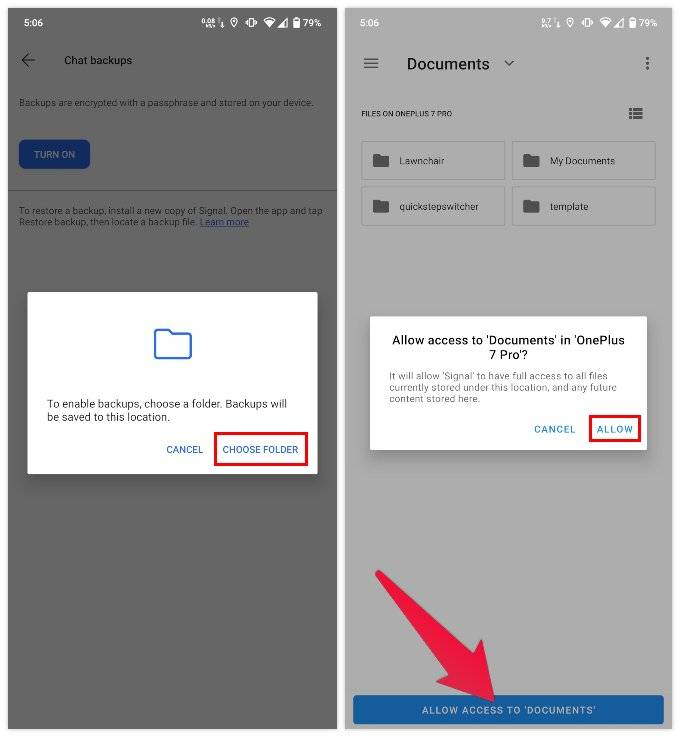 - 点击底部的蓝色大按钮,允许Signal访问该文件夹。