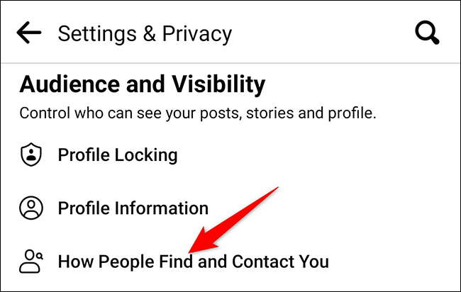 您将进入“设置和隐私”页面。向下滚动到“受众和可见性”部分,然后点击“人们如何找到和联系您”。