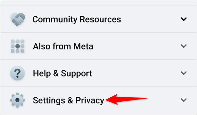 您将看到一个“菜单”页面。一直向下滚动此页面,然后点按“设置和隐私”。