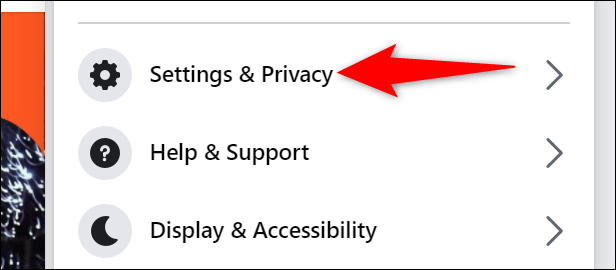 在单击向下箭头图标后打开的菜单中,选择“设置和隐私”。