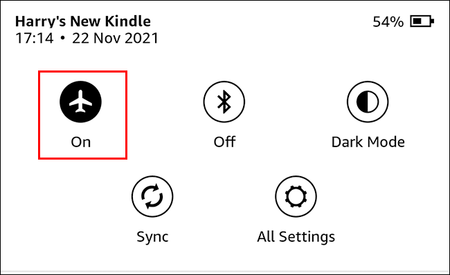 然后点击飞机图标将其关闭。这将允许您的 Kindle 连接到您的 Wi-Fi 网络。