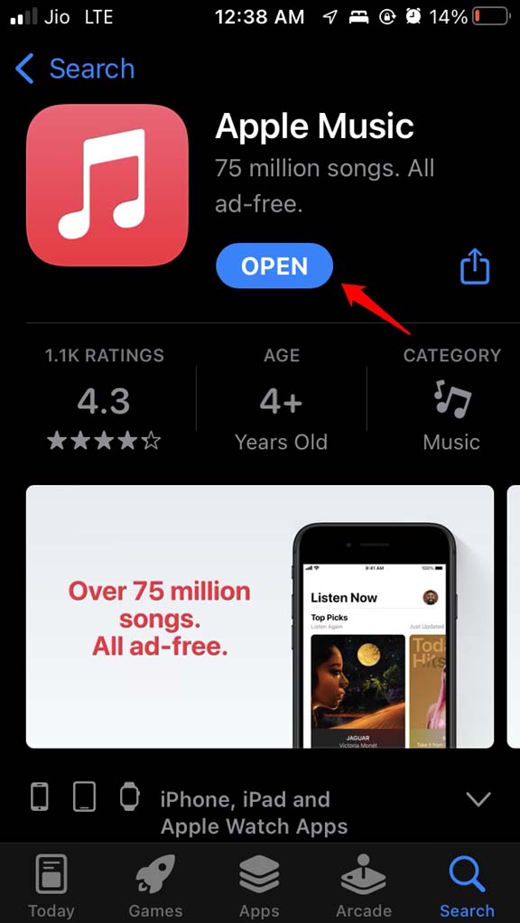 更新 iOS 后,访问 Apple Music 并检查是否可以查看所选歌曲的歌词。