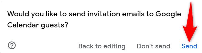 Google 日历将显示一个提示,询问您是否要为您的活动发送电子邮件。在此提示中点击“发送”以通过电子邮件邀请您的客人。