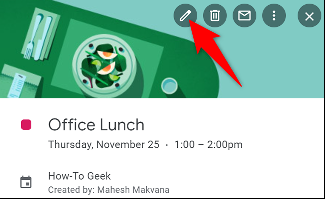 在打开的事件窗口顶部,单击“编辑事件”(铅笔图标)。
