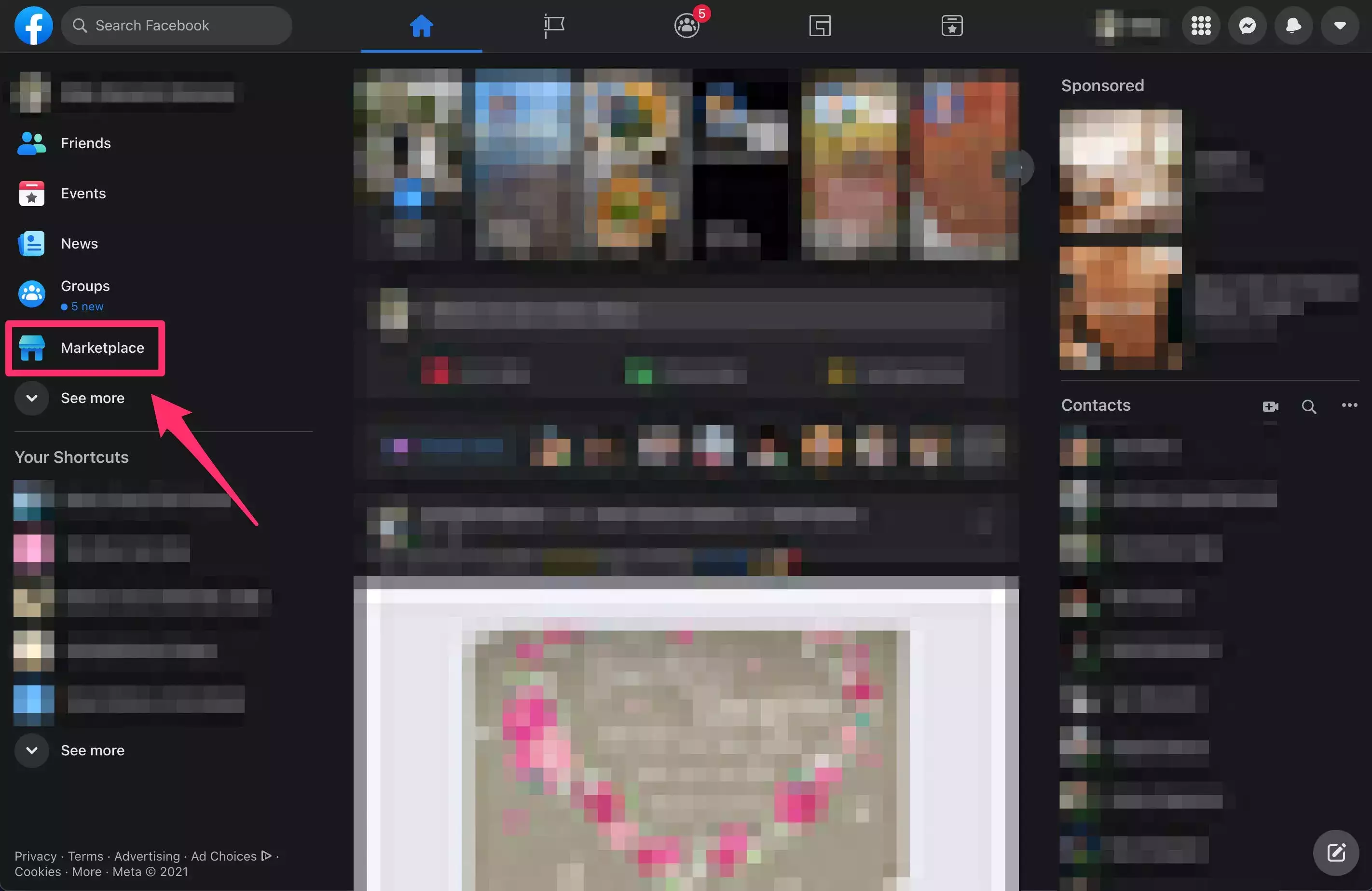 - 不经常使用: Facebook 的主菜单显示您最常使用的功能的快捷方式。如果您从不或很少使用 Facebook Marketplace,该图标可能会消失。