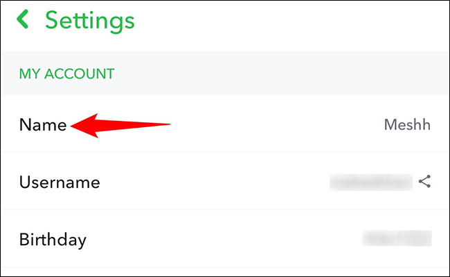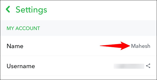 Snapchat 会将您带回“设置”屏幕,您可以在其中看到新的显示名称。