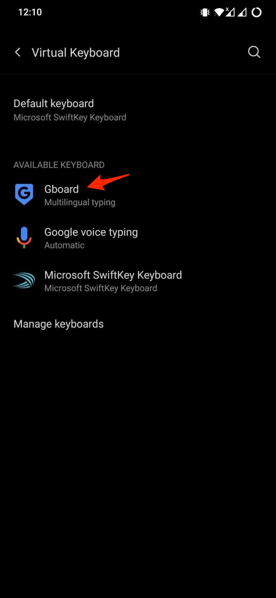 - 点击虚拟键盘,然后在可用键盘标题下,点击Gboard。