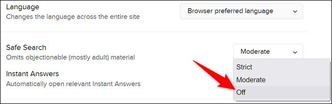 与其他搜索引擎一样,DuckDuckGo也带有安全搜索过滤器。您可以从设置页面轻松禁用此过滤器。