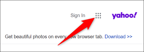 在搜索结果页面的右上角,单击“Yahoo Sites”(由九个点组成的正方形)。