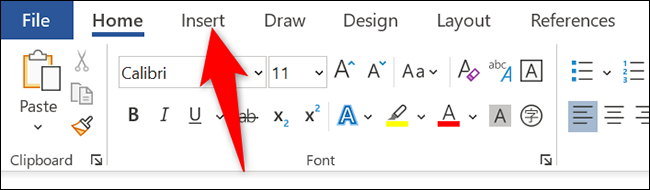 要使用此方法,请使用 Microsoft Word 打开您的文档。在顶部的 Word 功能区中,单击“插入”选项卡。