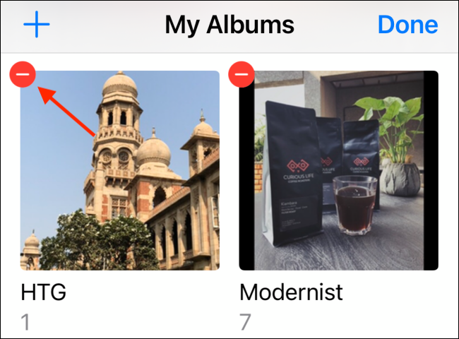 要删除相册,只需点击相册图像左上角的红色“-”按钮。