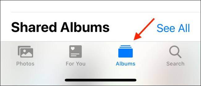 要开始此过程,请在 iPhone 或 iPad 上打开“照片”应用程序,然后导航到“相册”选项卡。