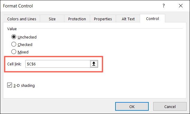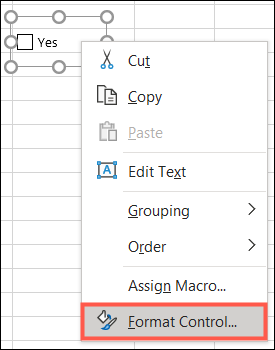 右键单击复选框控件并从菜单中选择“格式控件”。