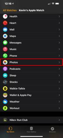 步骤6:在Apple Watch上,按Digital Crown(数字王冠)以加载应用程序屏幕,然后点击以打开Photos(应用程序)应用程序。