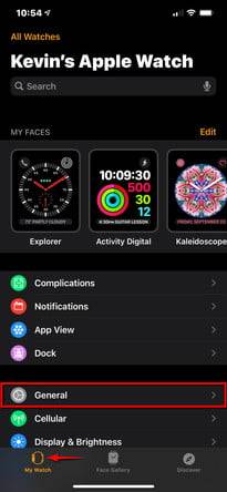 步骤2:如果默认情况下未加载,请点击“我的手表”标签。