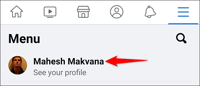 在打开的“菜单”屏幕上,点击顶部的个人资料。