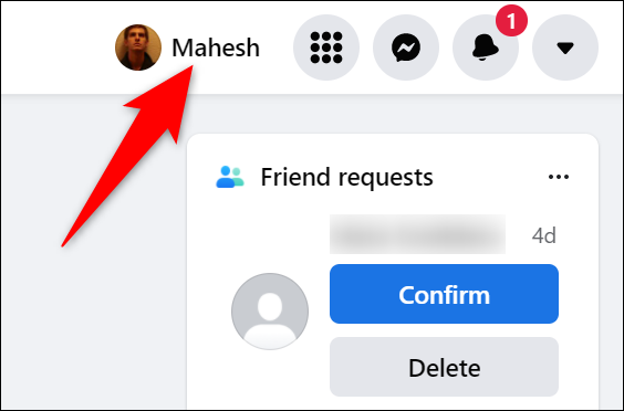 在 Facebook 的右上角,单击您的姓名以打开您的个人资料页面。