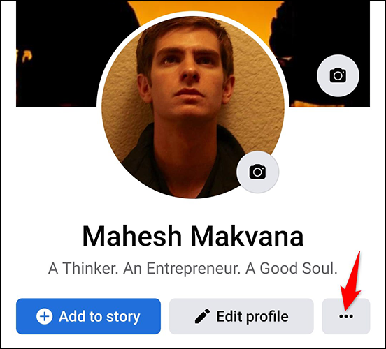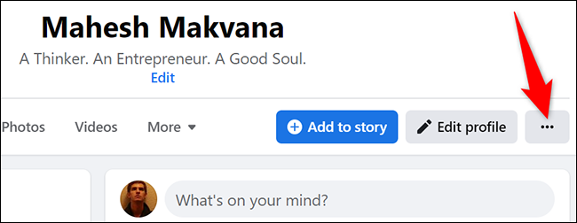 在个人资料页面上,在您姓名下方的选项卡行中,单击三个点(位于选项卡列表的最右侧)。