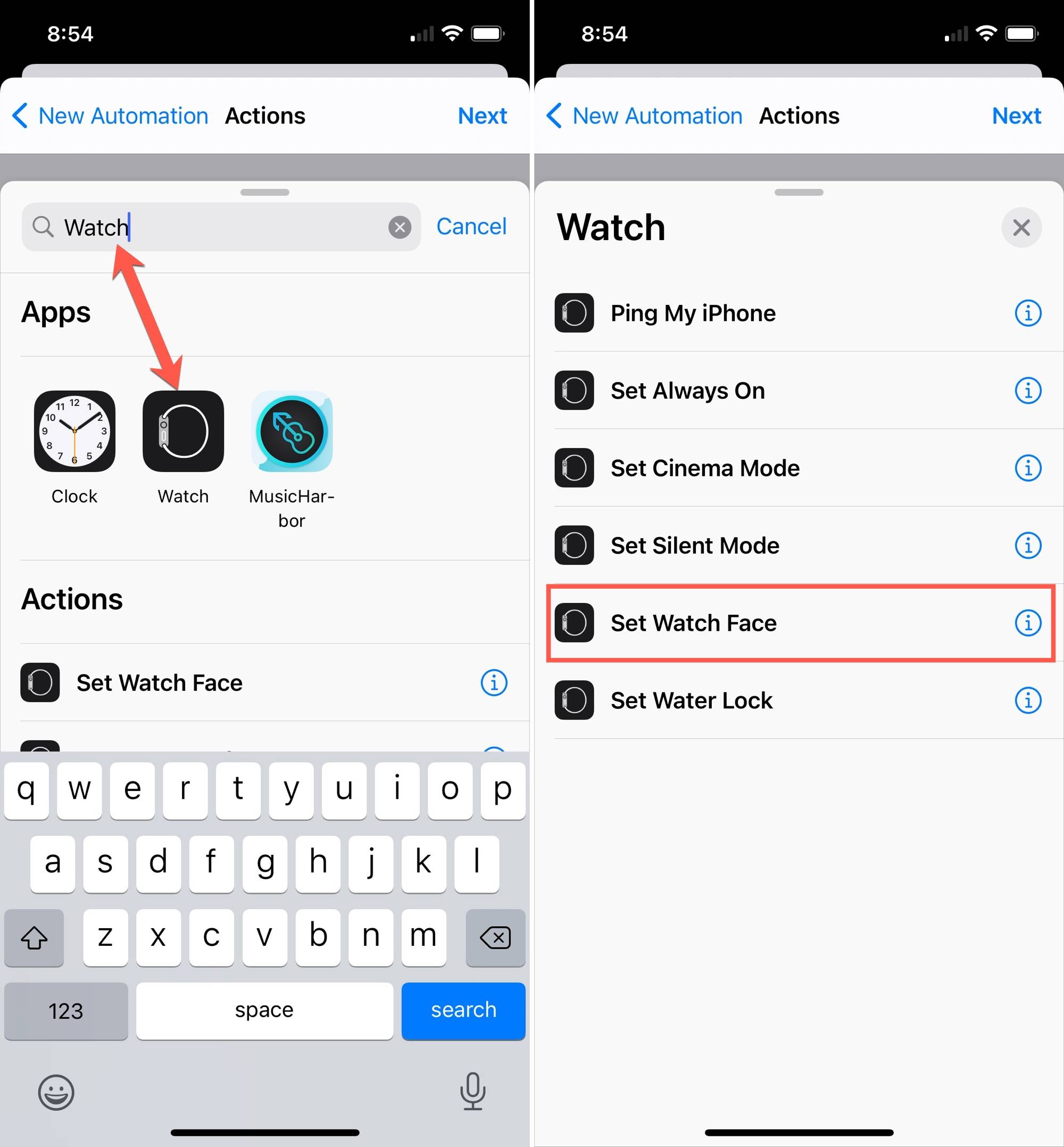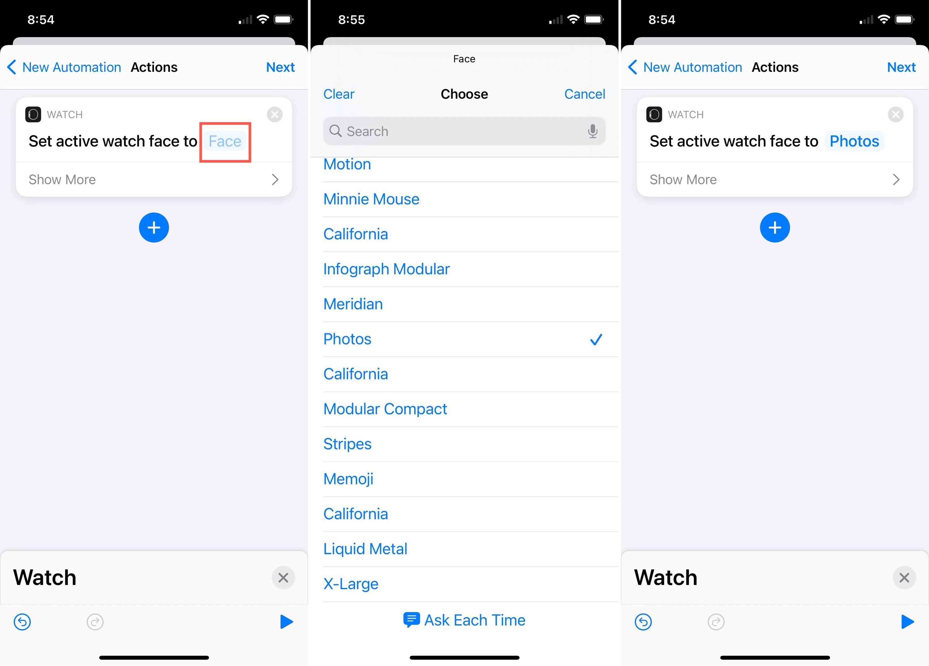 4)按照上面其余的步骤6至11进行操作,为您的手表添加操作,选择面部,然后完成自动化设置。