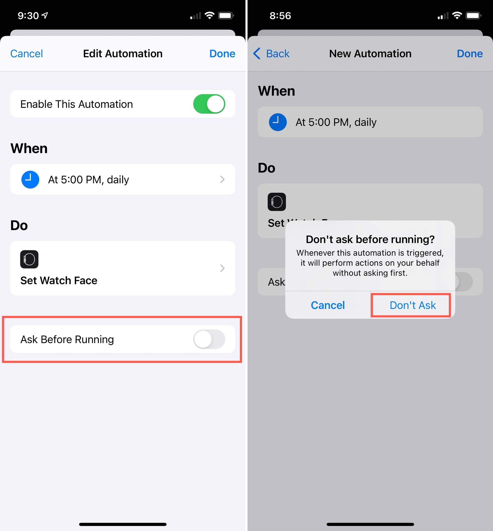 接下来,我们将向您展示如何设置自动化功能以根据位置更改表盘的外观。这几乎是相同的过程,只是您选择的是位置而不是时间。