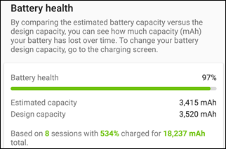 不幸的是,您不会立即得到答案。AccuBattery 无法访问电池的历史信息。安装后它会开始记录数据。经过几次充电/放电循环后,您将能够看到电池健康状况的读数。