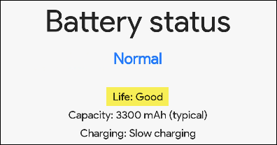现在您将看到有关电池的一些信息。“寿命”读数是指电池的健康状况。它将是“好”、“正常”或“弱”。
