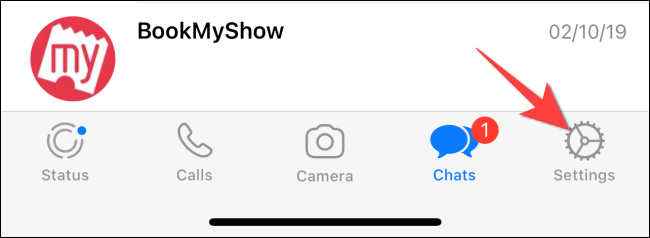 首先在 iPhone 上打开 WhatsApp。接下来,点击右下角的“设置”(齿轮状)图标。