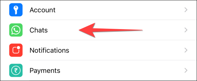在 WhatsApp 设置中,选择“聊天”。