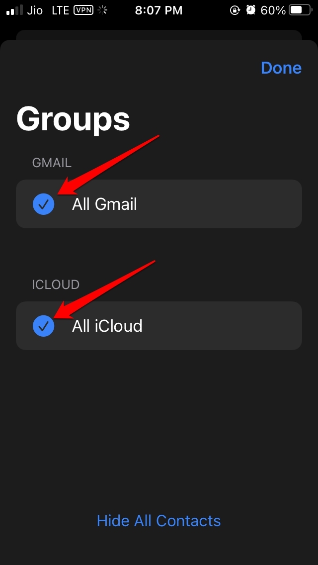 在您的 iPhone 上,联系人被分为 iCloud 和 Gmail 或其他邮件应用程序的不同组。因此,您可能看不到某个联系人组,因为可见性已隐藏。您必须确保您登录的各种帐户上的所有联系人都应该可见。