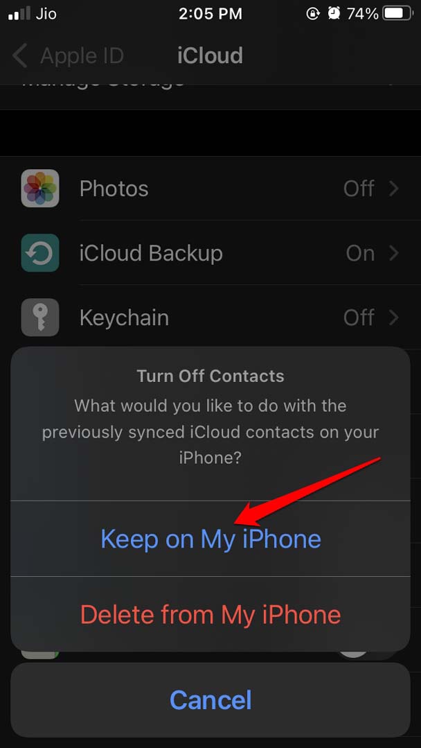 - 将出现一个提示,询问您两个选项Keep on My iPhone或Delete from My iPhone。