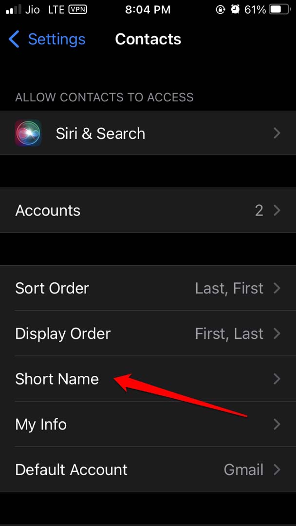 iOS 上的短名称允许您选择联系人姓名在联系人应用程序列表中的显示方式。它可能会显示名字、姓氏或这两个名字。一些用户确实报告说,启用此功能会神秘地使联系人消失。虽然这是一个相当随机的事件。