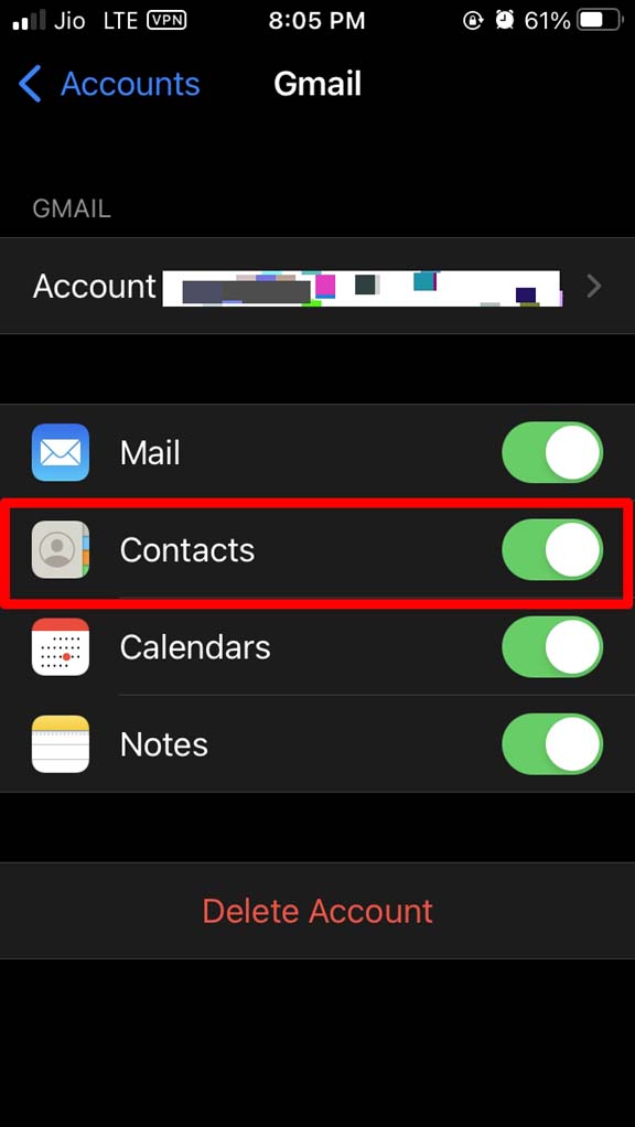 - 在该下导航到联系人并点击开关以禁用它。