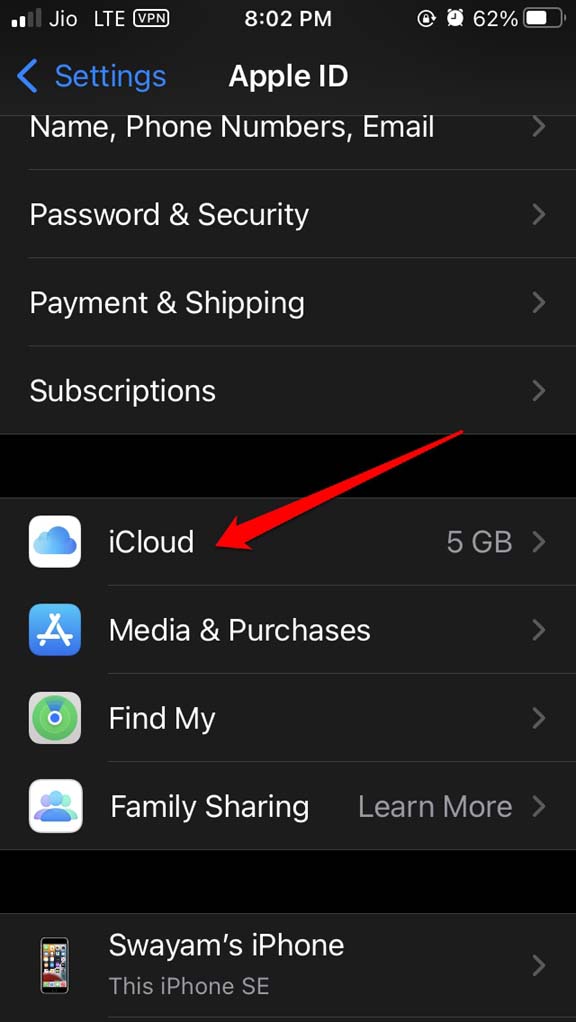 - 点击屏幕顶部的Apple ID 名称。