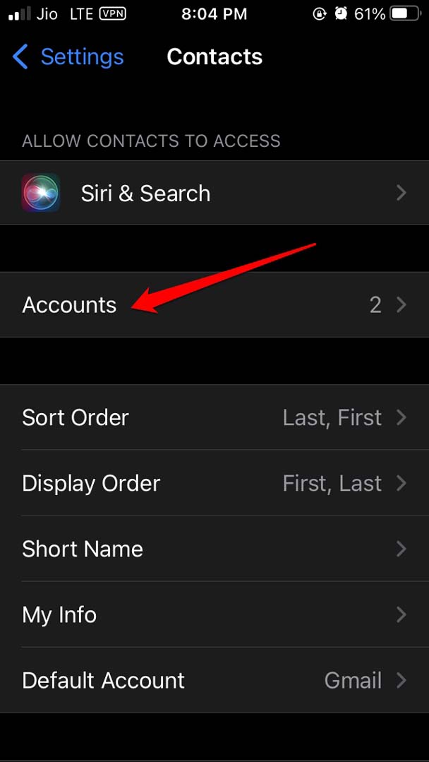 iOS for Contacts 应用程序中有一些设置需要调整以解决 iPhone 上丢失联系人的问题。大多数情况下,该问题是由于联系人未与 iCloud 服务器同步造成的。这可能是由于互联网连接不良或错误等原因造成的。还有其他原因,我将在下一节中讨论。看看这个。