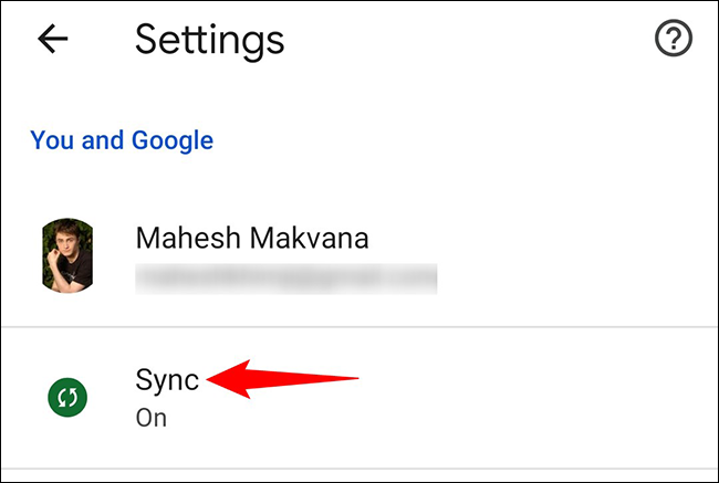 在“设置”页面上,选择“同步”。