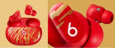 Apple 本周推出了限量版 Beats Studio Buds,以庆祝 2022 年 2 月 1 日的农历新年。定制的 Beats 采用红色设计,耳塞和充电盒上饰有金色老虎印花,向虎年致敬.