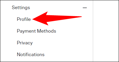 在展开的“设置”菜单中,单击“个人资料”。