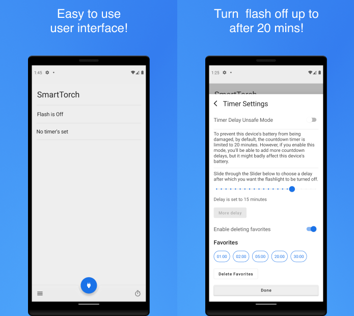 Play 商店中提供的最简单的手电筒应用程序之一,您可以选择为其设置计时器。值得注意的是,这个应用程序只提供了一个 30 秒的选项,闪光灯将保持打开状态。30 秒后,手机上的闪光灯将自动关闭。